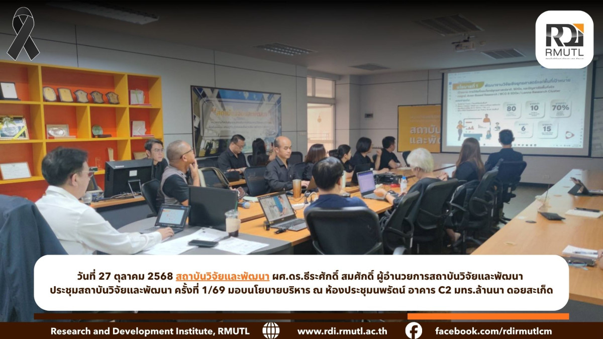 เมื่อวันที่ 27 ตุลาคม 2568 ณ ห้องประชุมสถาบันวิจัยและพัฒนา อาคาร C2 มหาวิทยาลัยเทคโนโลยีราชมงคลล้านนา ดอยสะเก็ด จังหวัดเชียงใหม่ ผู้ช่วยศาสตราจารย์ ดร.ธีระศักดิ์ สมศักดิ์ ผู้อำนวยการสถาบันวิจัยและพัฒนา มหาวิทยาลัยเทคโนโลยีราชมงคลล้านนา
