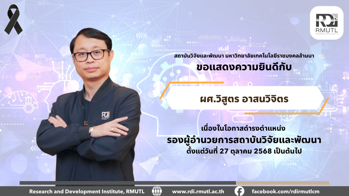ตามคำสั่งที่ 2088/2568 เรื่อง แต่งตั้งผู้ดำรงตำแหน่งรองผู้อำนวยการสถาบันวิจัยและพัฒนา