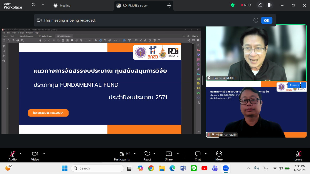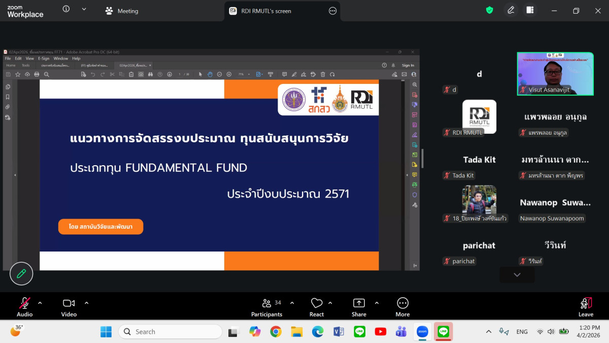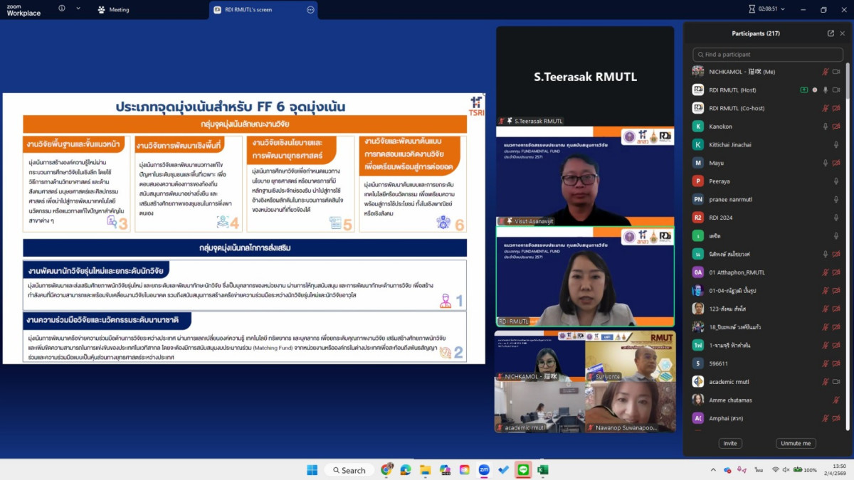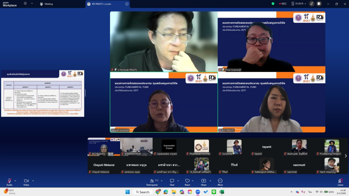 สถาบันวิจัยและพัฒนา มทร.ล้านนา จัดการประชุมชี้แจงการประกาศทุนวิจัยประเภท Fundamental Fund (FF) ประจำปีงบประมาณ 2571 ผ่านระบบออนไลน์ เพื่อเตรียมความพร้อมให้แก่คณาจารย์และนักวิจัยในการจัดทำข้อเสนอโครงการให้สอดคล้องกับเกณฑ์การจัดสรรงบประมาณ