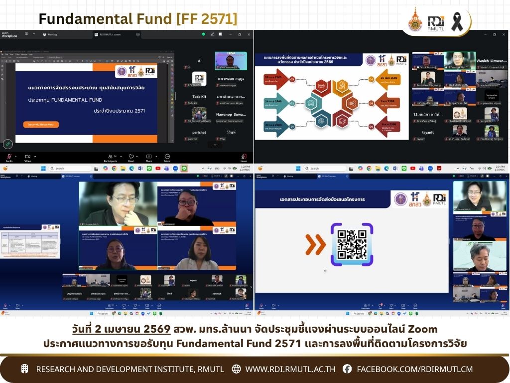 สามารถดาวน์โหลดเอกสารประกอบการประชุมและติดตามรายละเอียดเพิ่มเติมได้ที่ https://rmutl.link/FF71